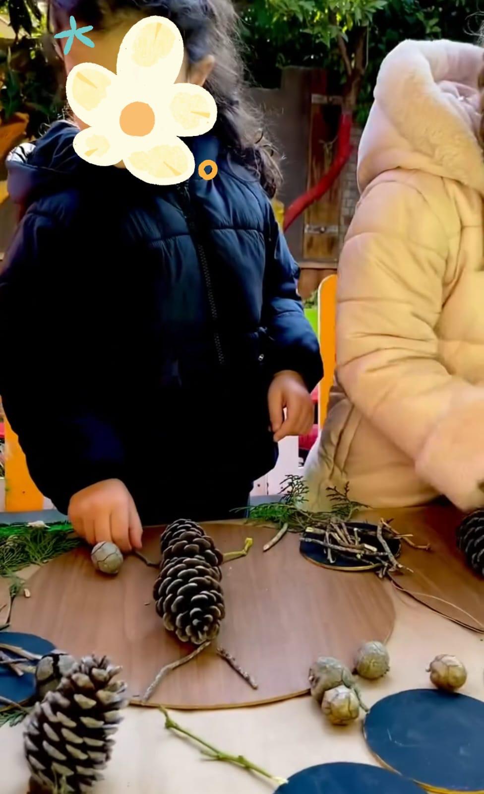 Çocuklar doğal materyaller ile karınca figürü yaparlar, bu süreçte karıncaların yaşam alanları ve davranışları hakkında sohbet edilir.